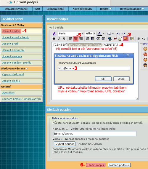 Ve svém uživatelském panelu vyberete volbu upravit podpis -1,
